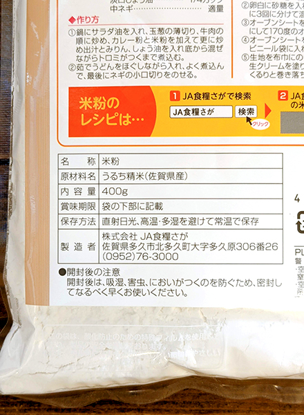 佐賀県産のお米を使用した米粉です。